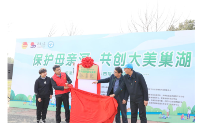 共青團安徽省委,合肥市包河區(qū)方興社區(qū)等有關(guān)領(lǐng)導共同為安徽希望工程“方興社區(qū)華夏公益林”揭牌。